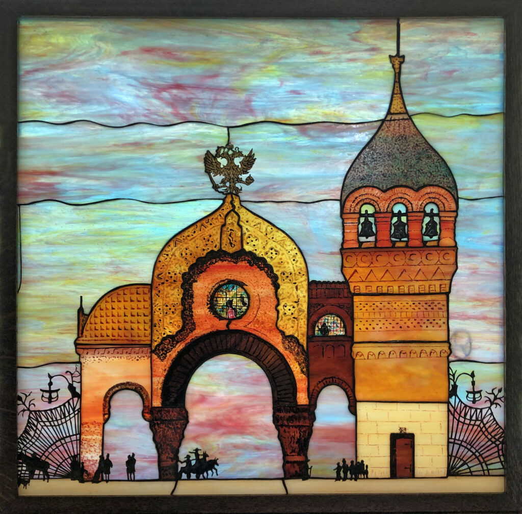 Originally intended by Oddy to be one of three panels representing Hartmann’s works, the Symphoria’s performance was unfortunately postponed and so only this panel of the Great Gate was completed.